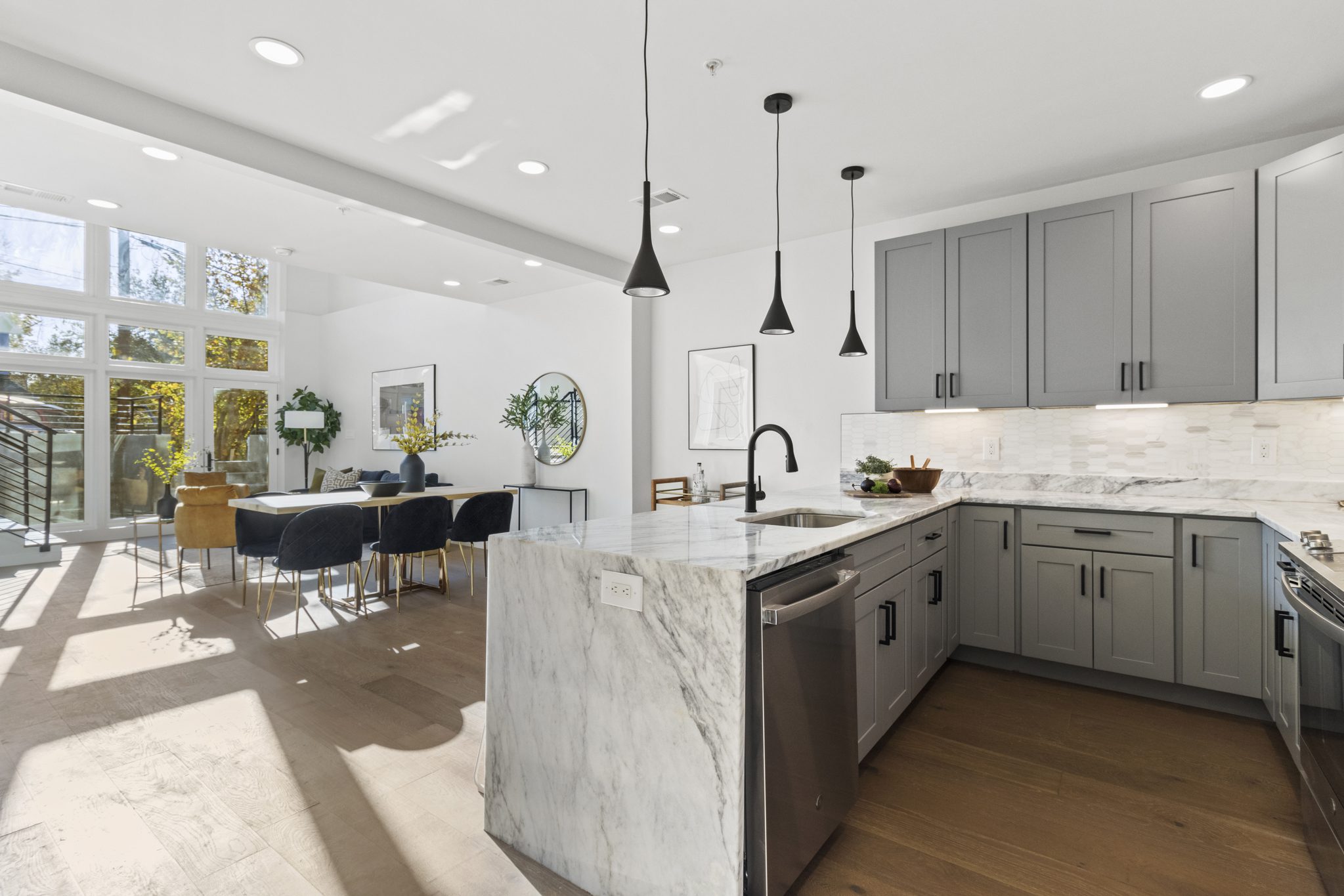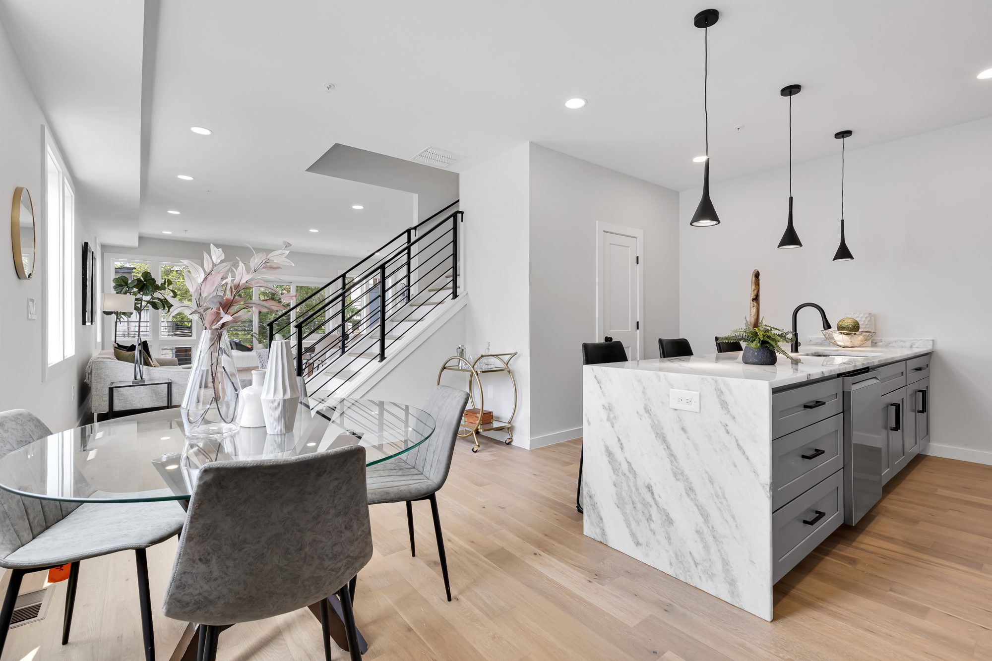 These ground-up construction residences with private entrances from Park Road provide tremendous value over their row house counterparts and feature three levels fully above-grade. Each unit touts its own roof deck with views of the National Cathedral, an in-law suite with first-floor access, and a wet bar that can be utilized for guests or Airbnb rental income. These design-driven units accommodate kitchens with marble surfaces, large islands/peninsulas, and living areas with great flow. The primary suite features ample walk-in closet space and an en suite bathroom, while secondary bedrooms also offer generous spaces.