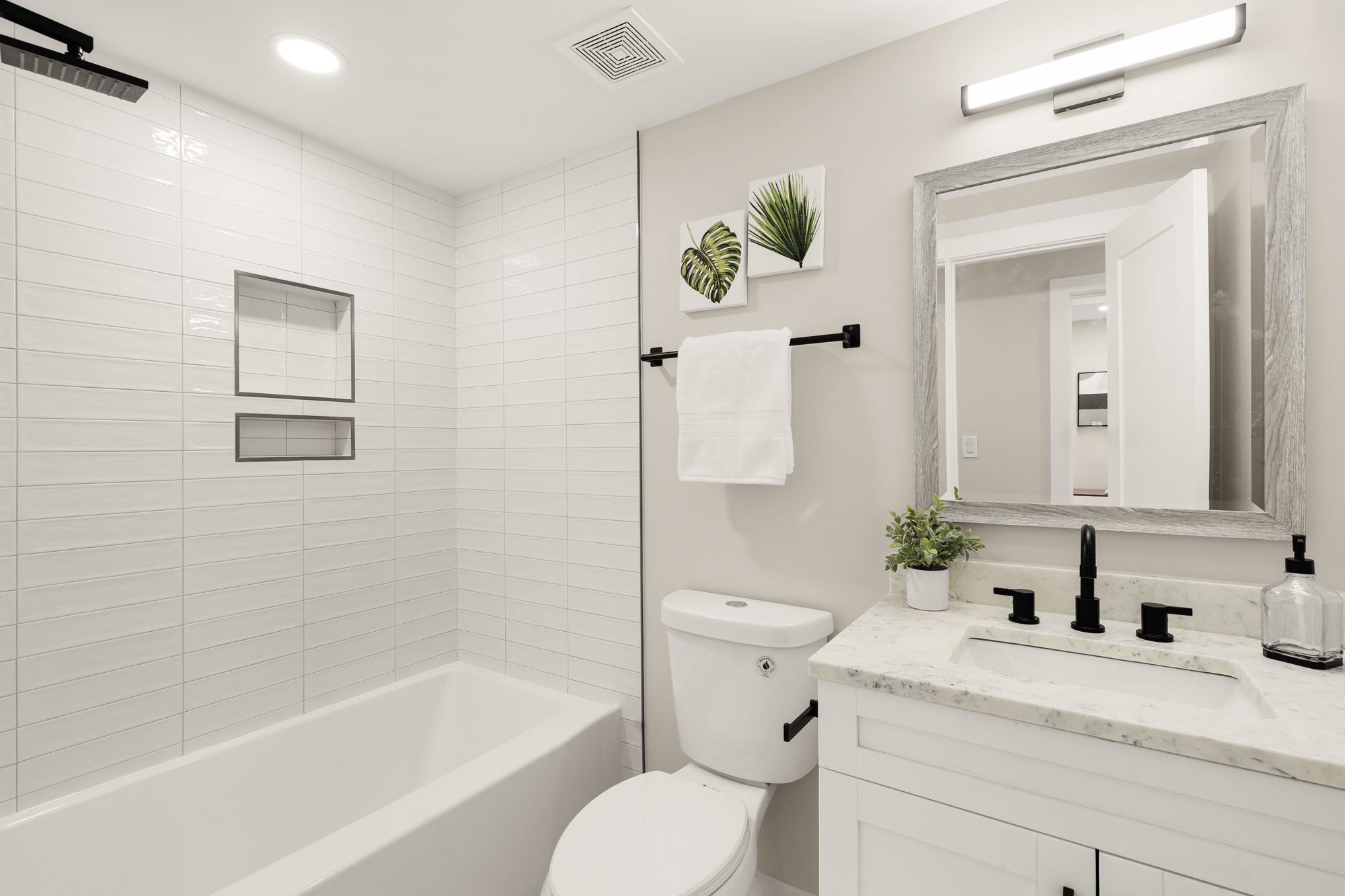 This newly converted, end-of-row, seven-unit condominium development presents a range of inspiring two-bedroom units that offer tremendous value in a booming location. Unit one features two bedrooms, two full bathrooms, a walk-out terrace, and a private patio area on the side yard. These open-plan condos are accentuated with wide-plank hardwood throughout, LG kitchen appliances, authentic Carrara marble kitchen countertops, marble bathroom vanities, bespoke tile selections, and extensive storage and closet space. The project is a 2-minute walk from Turkey Thicket Recreation Center, which includes an indoor swimming pool and fitness complex, fully lit tennis and pickleball courts, a playground with a splash park, and more. 5-10 minute walk to Brookland-CUA Metro Station (Red) Fort Totten Metro Station. Short walk to Brookland Pint, Masala Story, Primrose 2.0, and Brookland’s Fines.
